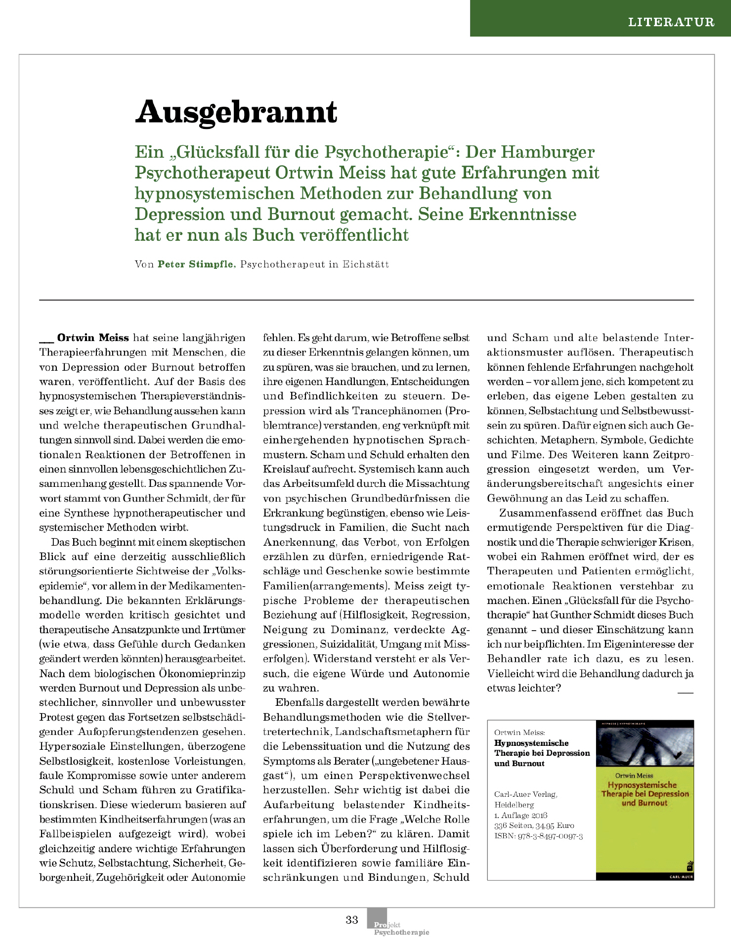 Ortwin Meiss: Hypnosystemische Therapie Depression In: Projekt Psychotherapie PP, BVVP, 2016/02, S. 33